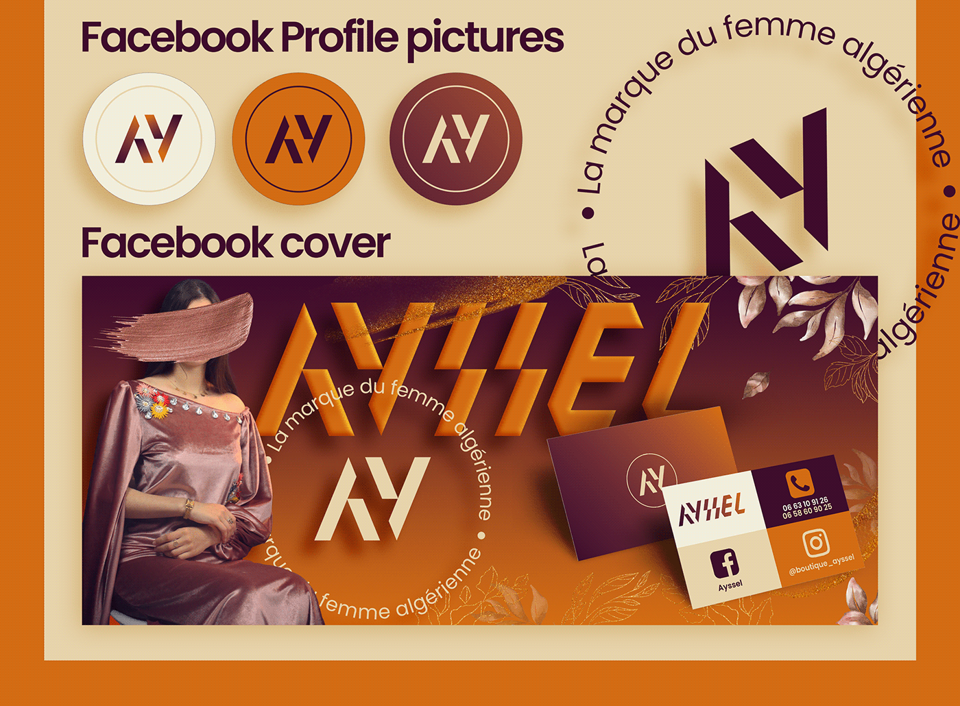 علامة أزياء جزائرية فاخرة تجمع بين الذوق العصري والروح التراثية، وتُصنع بتفانٍ على يد نساء جزائريات شغوفات بالحرفية. اعتمدت الهوية البصرية على شعار هندسي نظيف يعكس الأناقة، الدقة، والحداثة التي تميز العلامة. يرمز التصميم إلى القوة والنعومة في آن واحد، بينما يبرز النظام البصري البساطة الراقية التي تترجم هوية AysseL كخط أزياء فاخر يحمل بصمة جزائرية أصيلة. الهدف من العلامة كان خلق إحساس بالفخامة الهادئة، المبنية على الجودة، الإبداع، والعمل اليدوي المتقن.